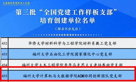 日前,教育部公布第三批新时代高校党建示范创建和质量创优工作的评审结果,我院acm协同创新团队党支部入选“全国党建工作样板支部”培育创建单位。